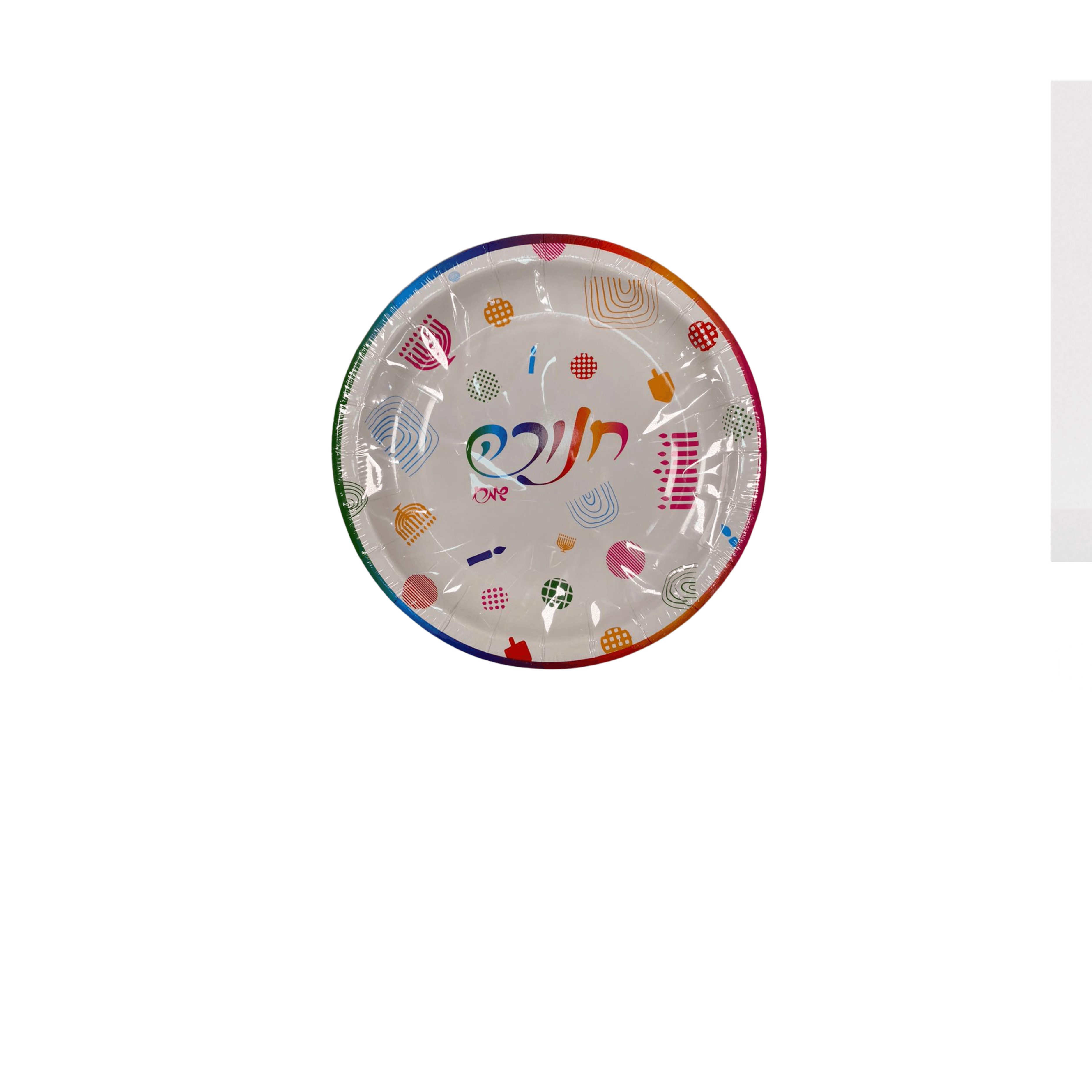 צלחת "7.5 חנוכה צבעוני א-10 יח'